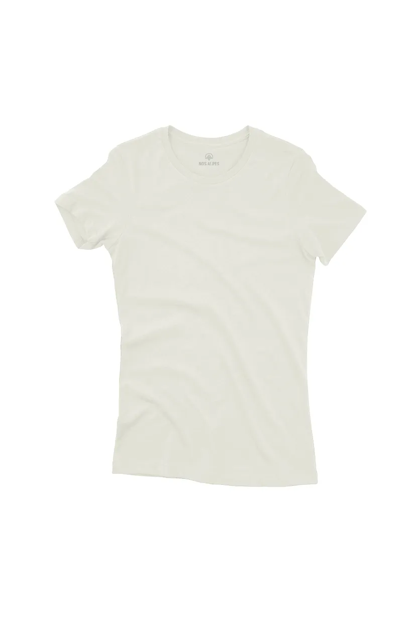 Camiseta Feminina Básica Algodão Sustentável Off White é feita para quem vive a natureza dentro e fora da cidade. Para usar em viagens, caminhada na natureza, camping ou no dia a dia urbano.