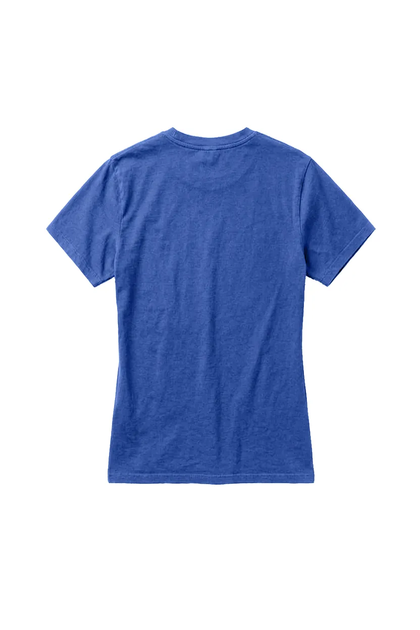 Camiseta Feminina Básica Estonada Azul, macia e respirável, com aspecto envelhecido e cor levemente desgastada, perfeita para trabalho, dia a dia e eventos casuais na cidade.