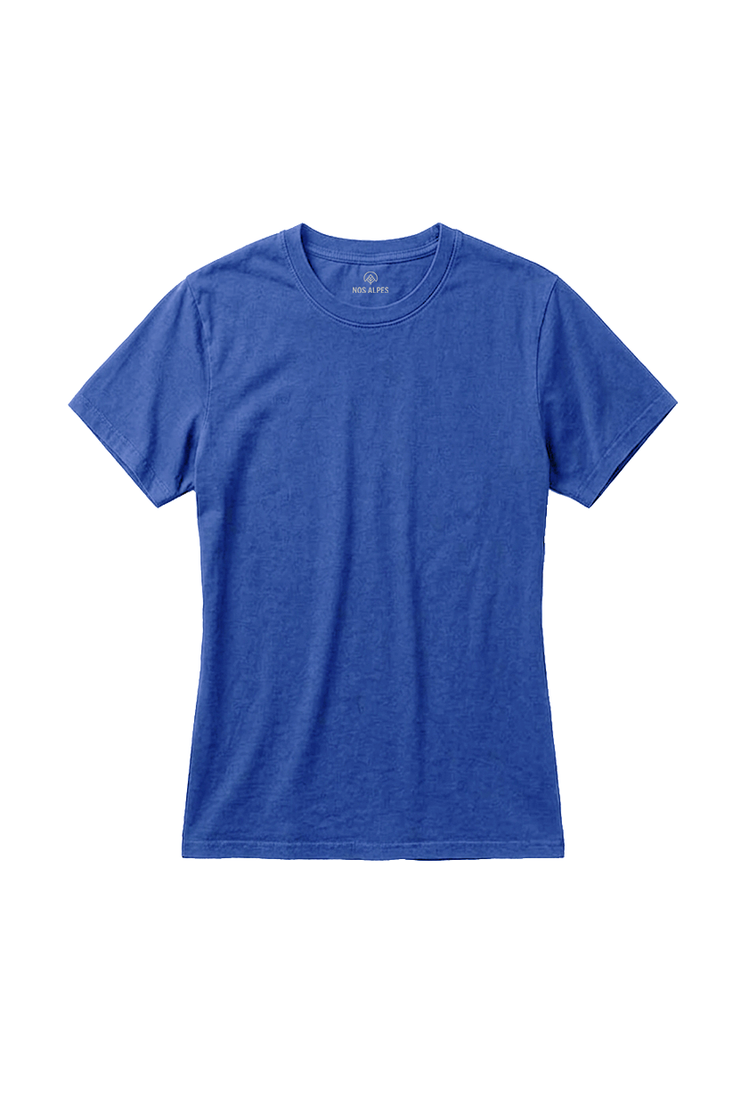Camiseta Feminina Básica Estonada Azul Nos Alpes é a peça certa para quem gosta de um visual urbano com personalidade. Produzida com 100% fibra natural de algodão sustentável, passa por um processo especial de tingimento que cria um aspecto envelhecido, com cor levemente desgastada e efeito estonado único em cada peça, sem abrir mão do conforto e do menor impacto ambiental.