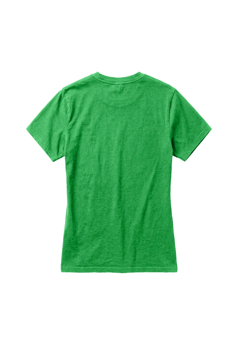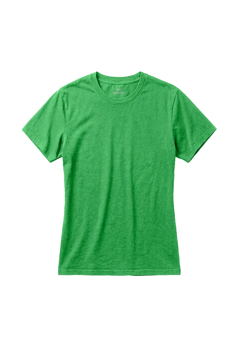 Camiseta Feminina Básica Estonada Verde, macia e respirável, com aspecto envelhecido e cor levemente desgastada, perfeita para trabalho, dia a dia e eventos casuais na cidade.