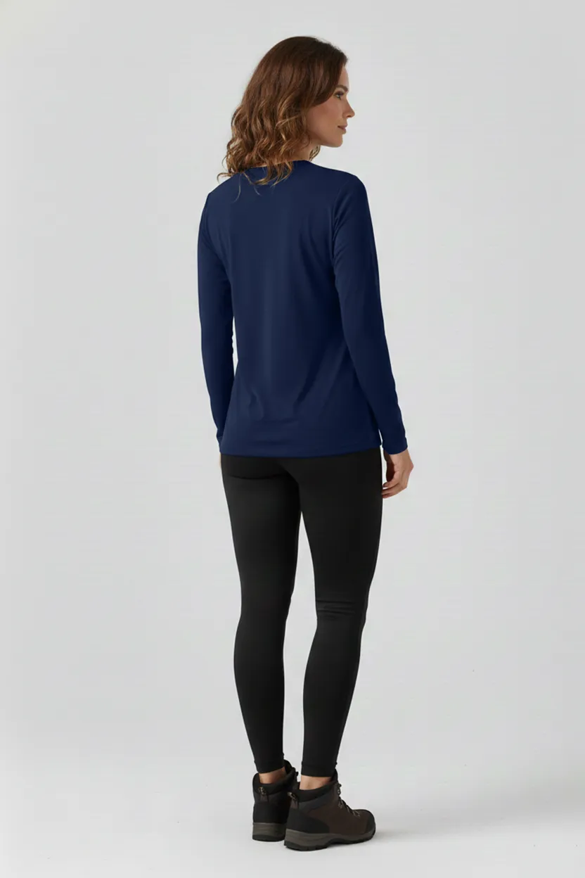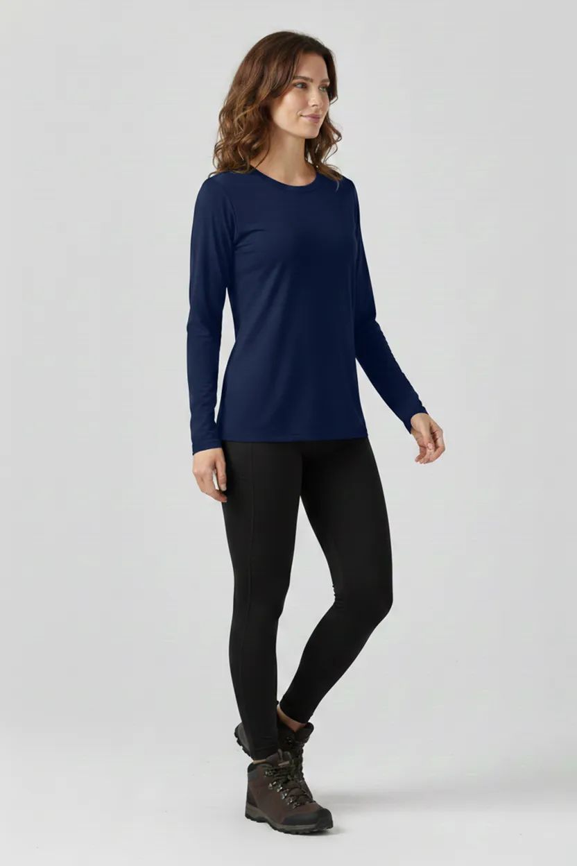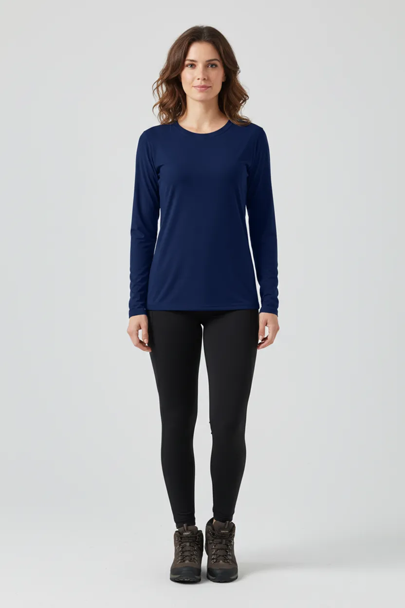 A Camiseta Feminina Básica Poliamida UV Manga Longa Marinho foi desenvolvida para quem busca conforto, proteção e praticidade em atividades ao ar livre. Produzida em tecido tecnológico de poliamida com toque gelado e estrutura de duas micro camadas, ela gerencia a umidade entre o corpo e a roupa, garantindo alta transpiração, anti odor, secagem rápida e sensação de corpo sempre seco. Também é easy care: Desamassa com o calor do corpo e não tem necessidade de passar.