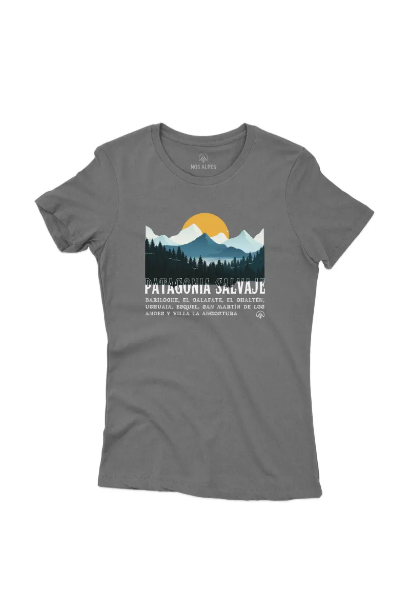 Camiseta Feminina Patagônia em algodão sustentável. Macia, confortável, qualidade premium e perfeita para quem natureza e viagens