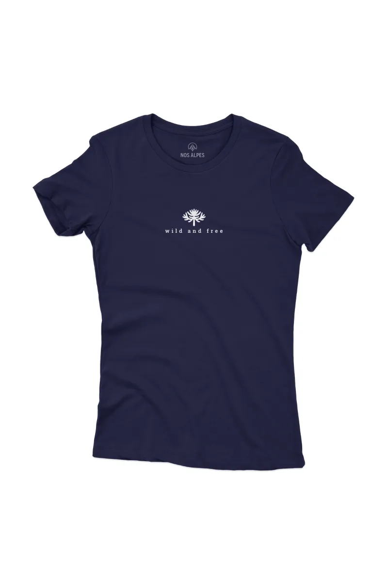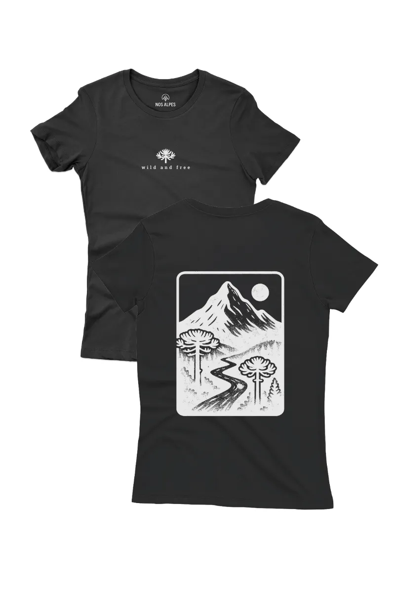 Camiseta Feminina Wild And Free em algodão sustentável. Macia, confortável, qualidade premium e perfeita para quem natureza e viagens