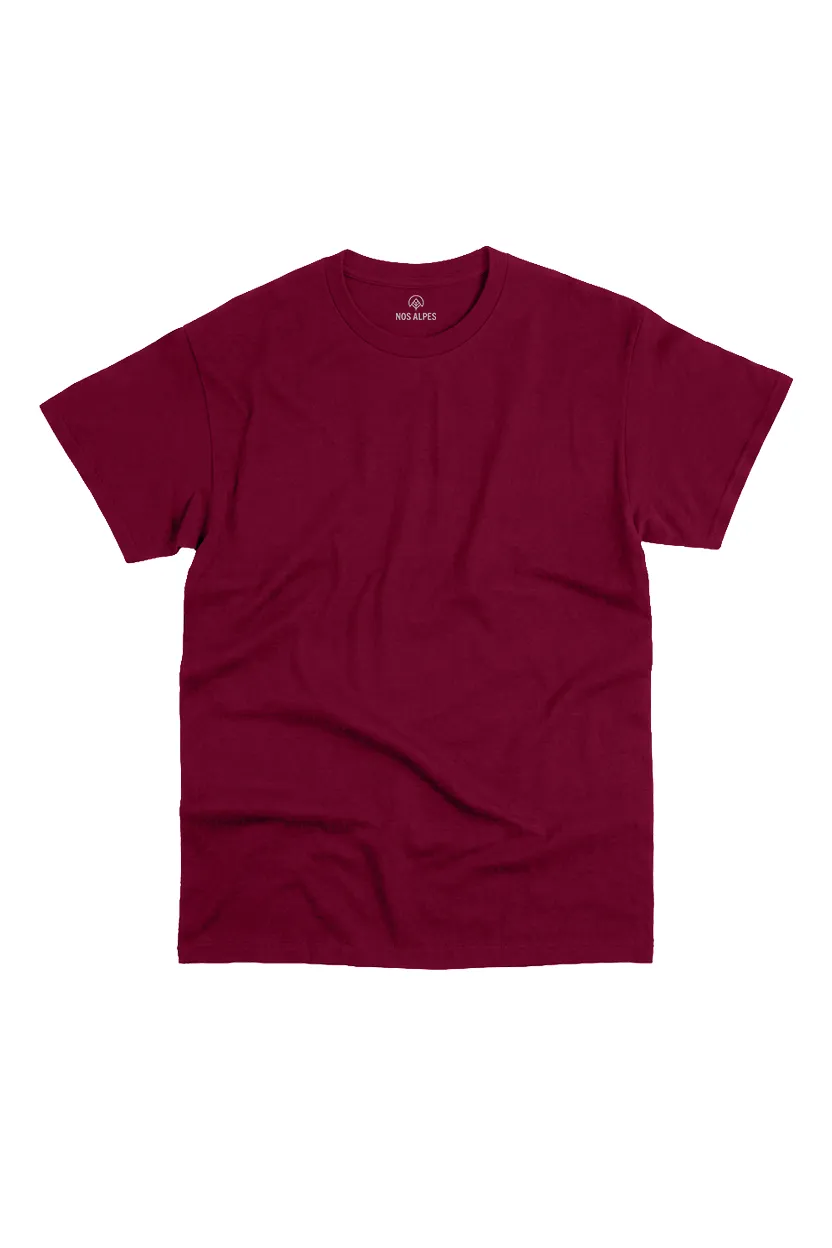 Camiseta Masculina Básica Algodão Sustentável Bordô é feita para quem vive a natureza dentro e fora da cidade. Para usar em viagens, caminhada na natureza, camping ou no dia a dia urbano.