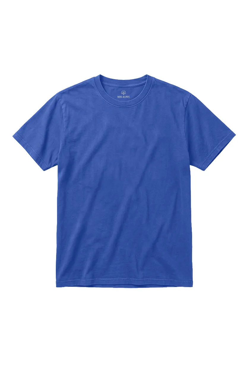 Camiseta Masculina Básica Estonada Azul Nos Alpes é a peça certa para quem gosta de um visual urbano com personalidade. Produzida com 100% fibra natural de algodão sustentável, passa por um processo especial de tingimento que cria um aspecto envelhecido, com cor levemente desgastada e efeito estonado único em cada peça, sem abrir mão do conforto e do menor impacto ambiental.