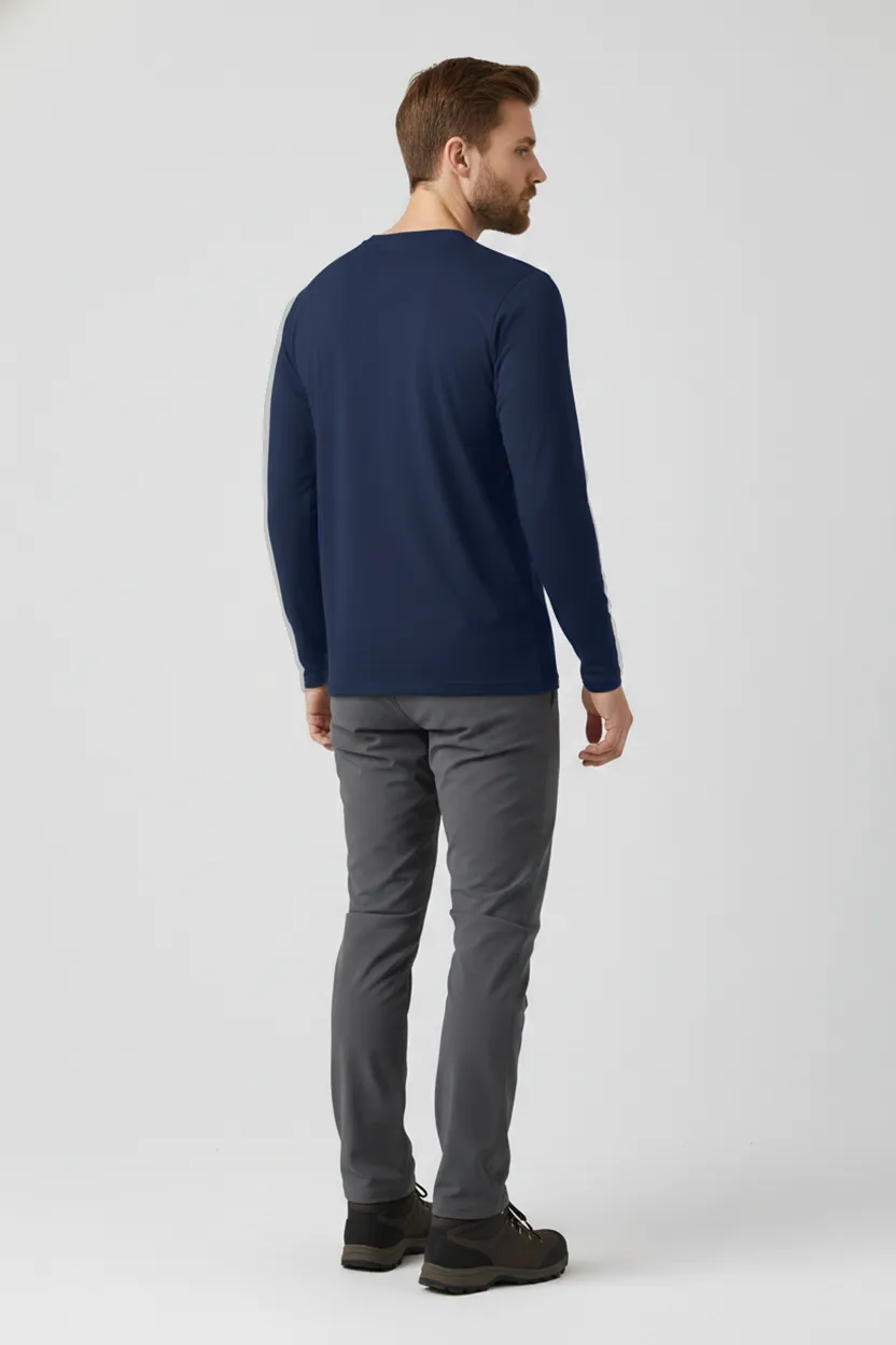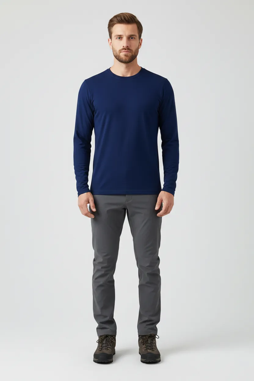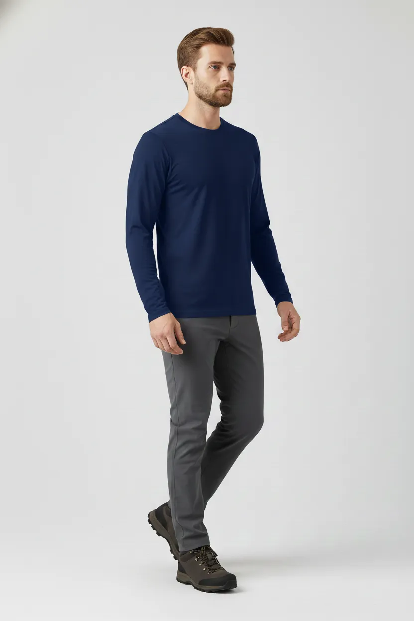 A Camiseta Masculina Básica Poliamida UV Manga Longa Marinho foi desenvolvida para quem busca conforto, proteção e praticidade em atividades ao ar livre. Produzida em tecido tecnológico de poliamida com toque gelado e estrutura de duas micro camadas, ela gerencia a umidade entre o corpo e a roupa, garantindo alta transpiração, anti odor, secagem rápida e sensação de corpo sempre seco. Também é easy care: Desamassa com o calor do corpo e não tem necessidade de passar.