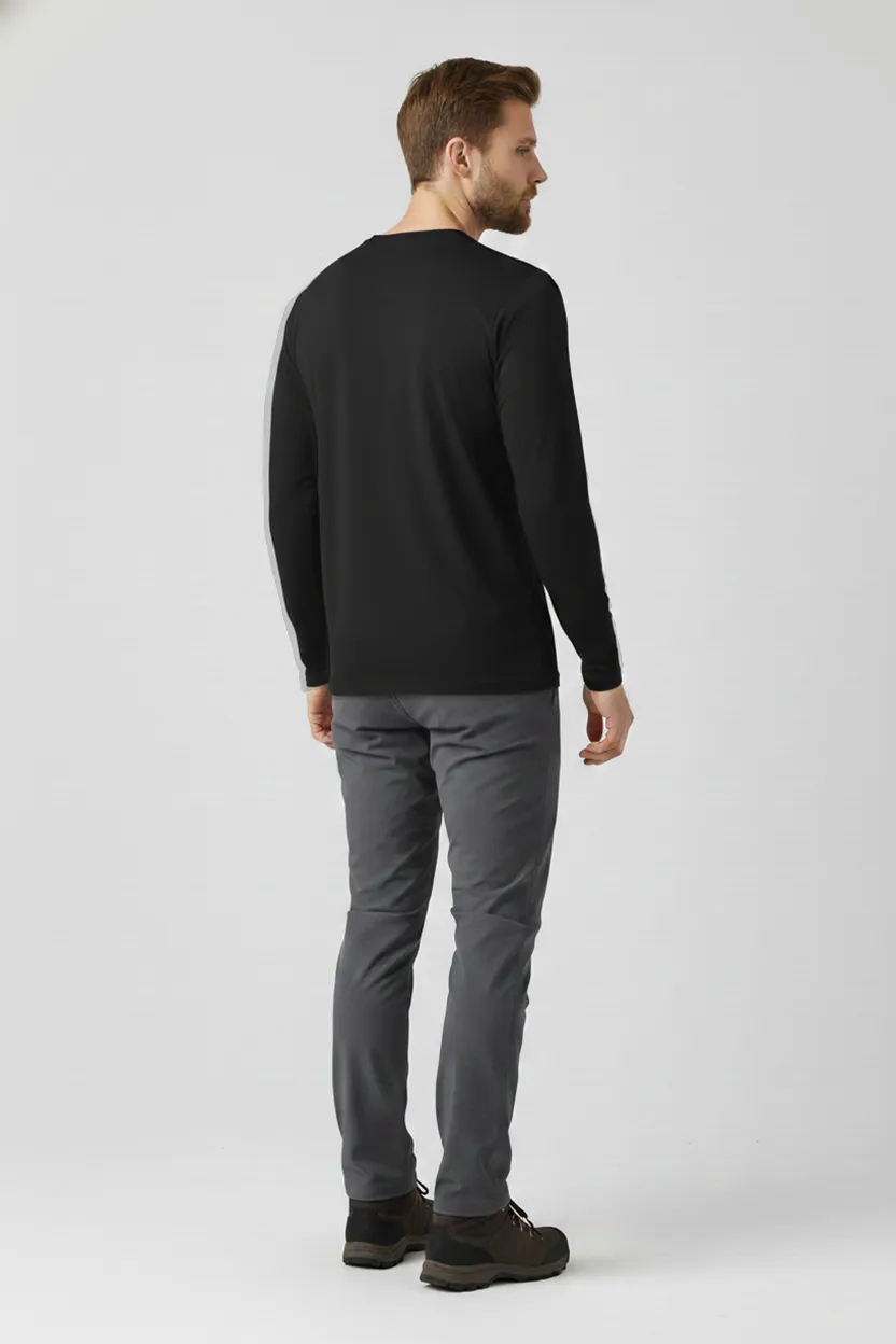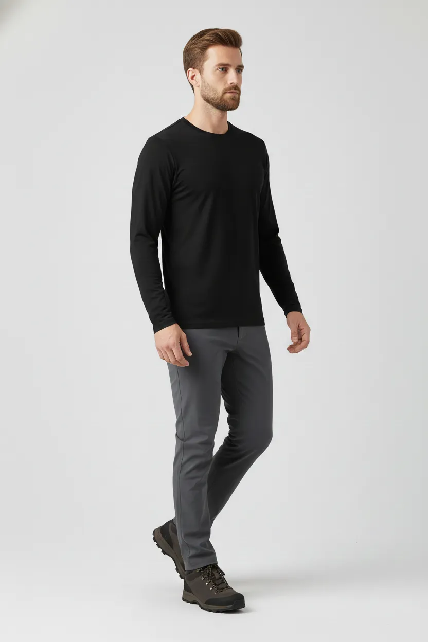 A Camiseta Masculina Básica Poliamida UV Manga Longa Preto foi desenvolvida para quem busca conforto, proteção e praticidade em atividades ao ar livre. Produzida em tecido tecnológico de poliamida com toque gelado e estrutura de duas micro camadas, ela gerencia a umidade entre o corpo e a roupa, garantindo alta transpiração, anti odor, secagem rápida e sensação de corpo sempre seco. Também é easy care: Desamassa com o calor do corpo e não tem necessidade de passar.