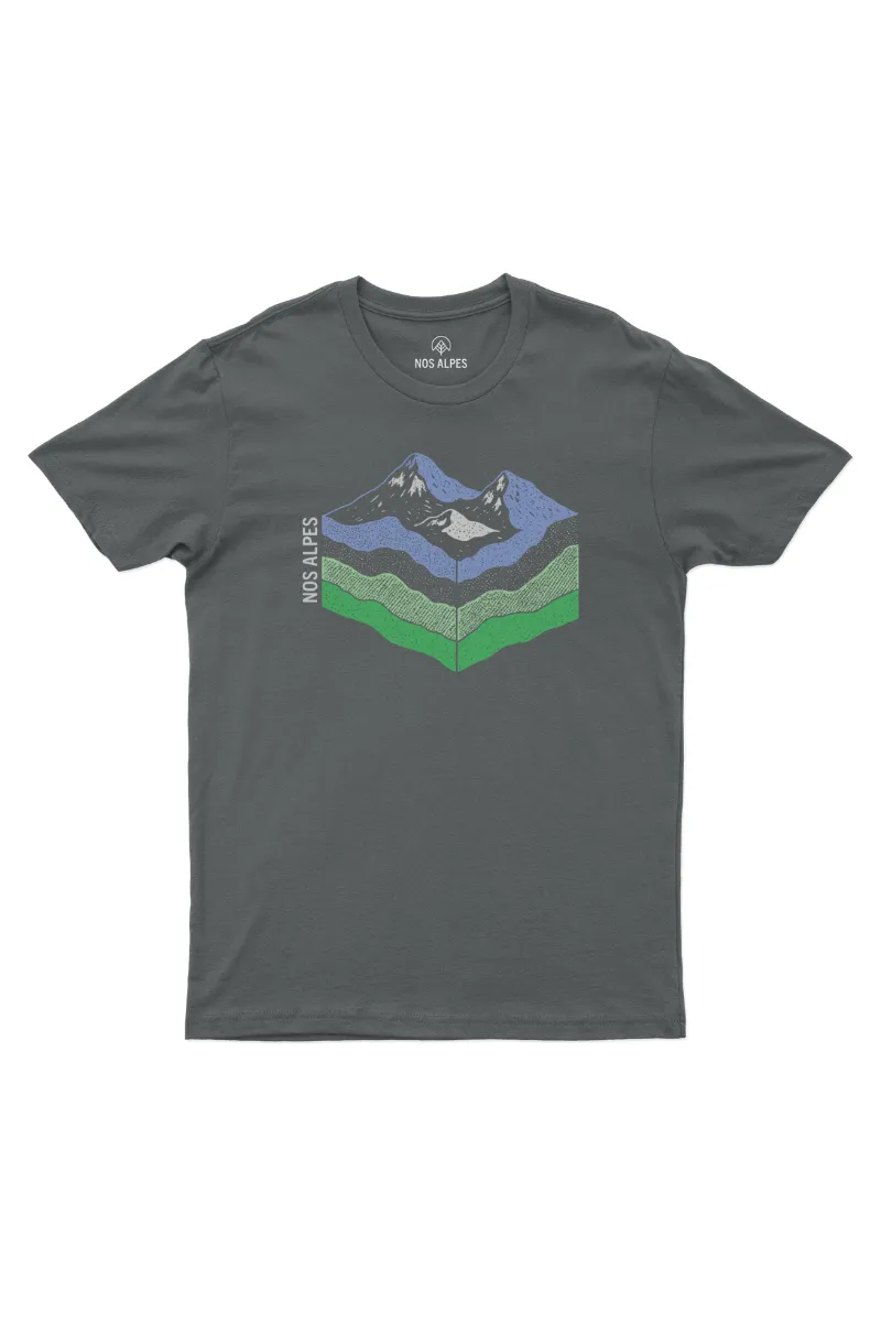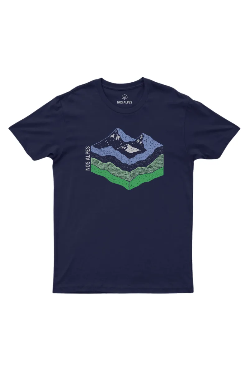 Camiseta Masculina Nos Alpes Geo em algodão sustentável. Macia, confortável, qualidade premium e perfeita para quem natureza e viagens