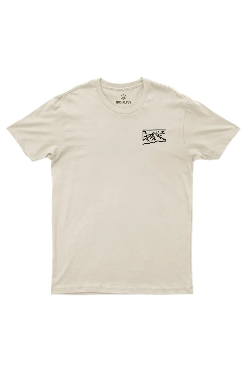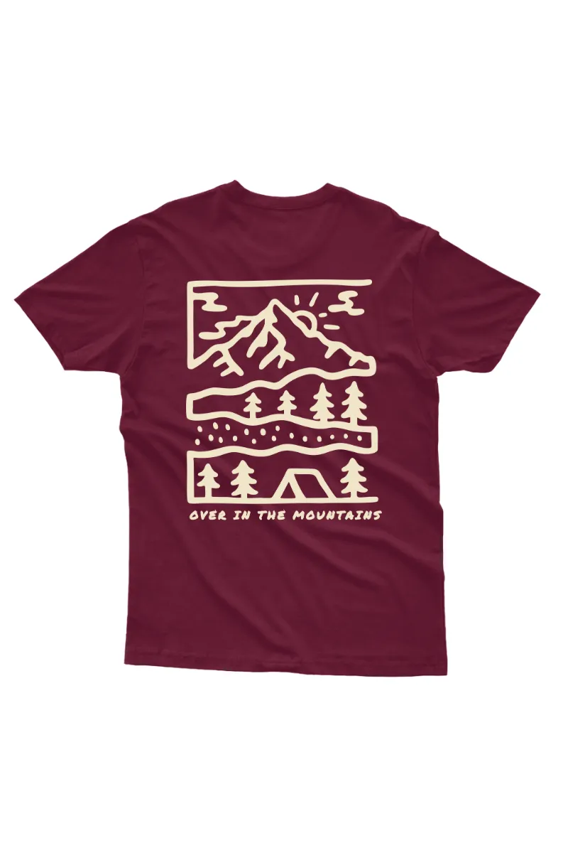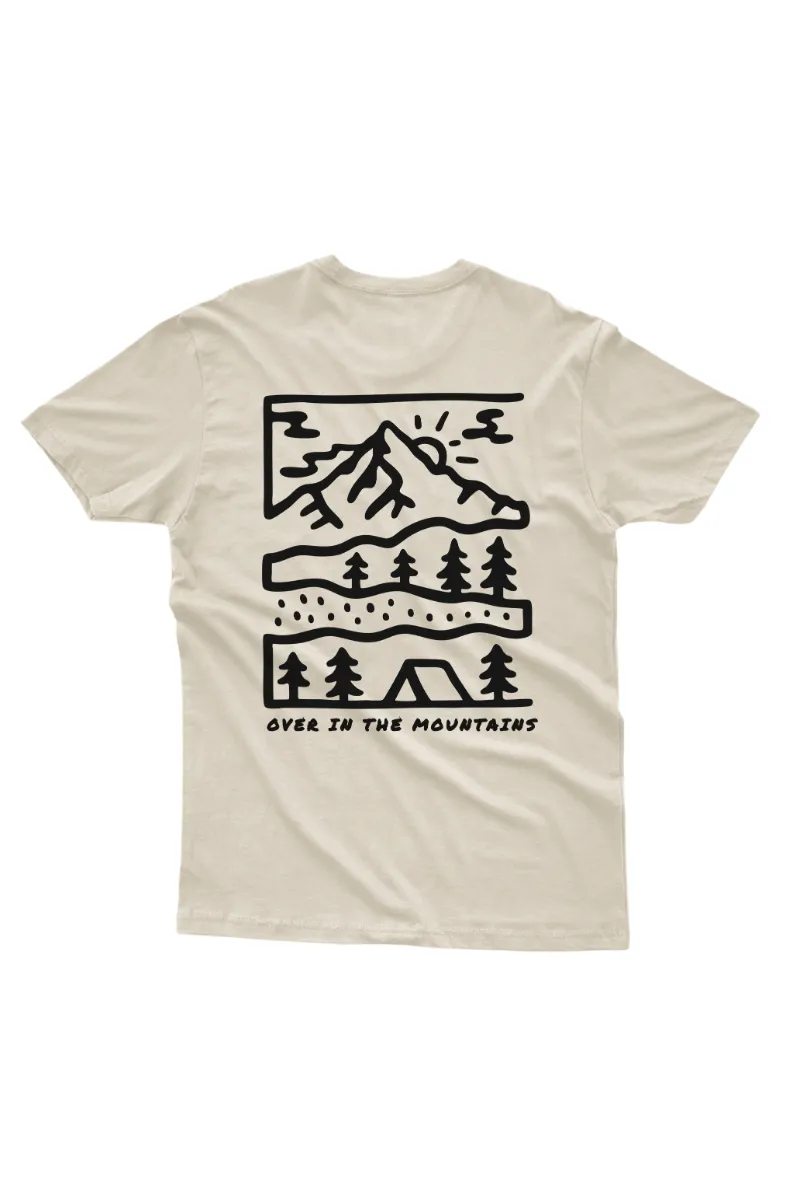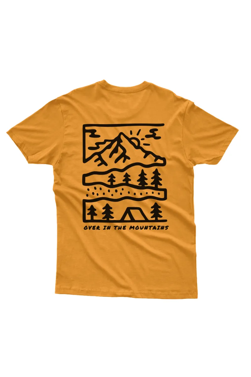 Camiseta Masculina Over In The Mountains em algodão sustentável. Macia, confortável, qualidade premium e perfeita para quem natureza e viagens