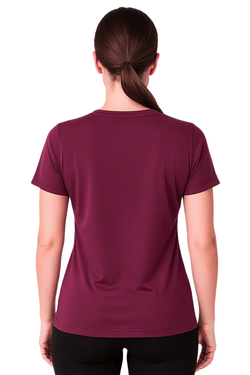 Kit 3 Camisetas Feminina Básica Poliamida UV Bordô com tecido tecnológico. Proteção solar fator 50+, absorção de suor e secagem rápida. Evita o mau cheiro e não precisa passar. Ideal para trilhas, trekking e viagens