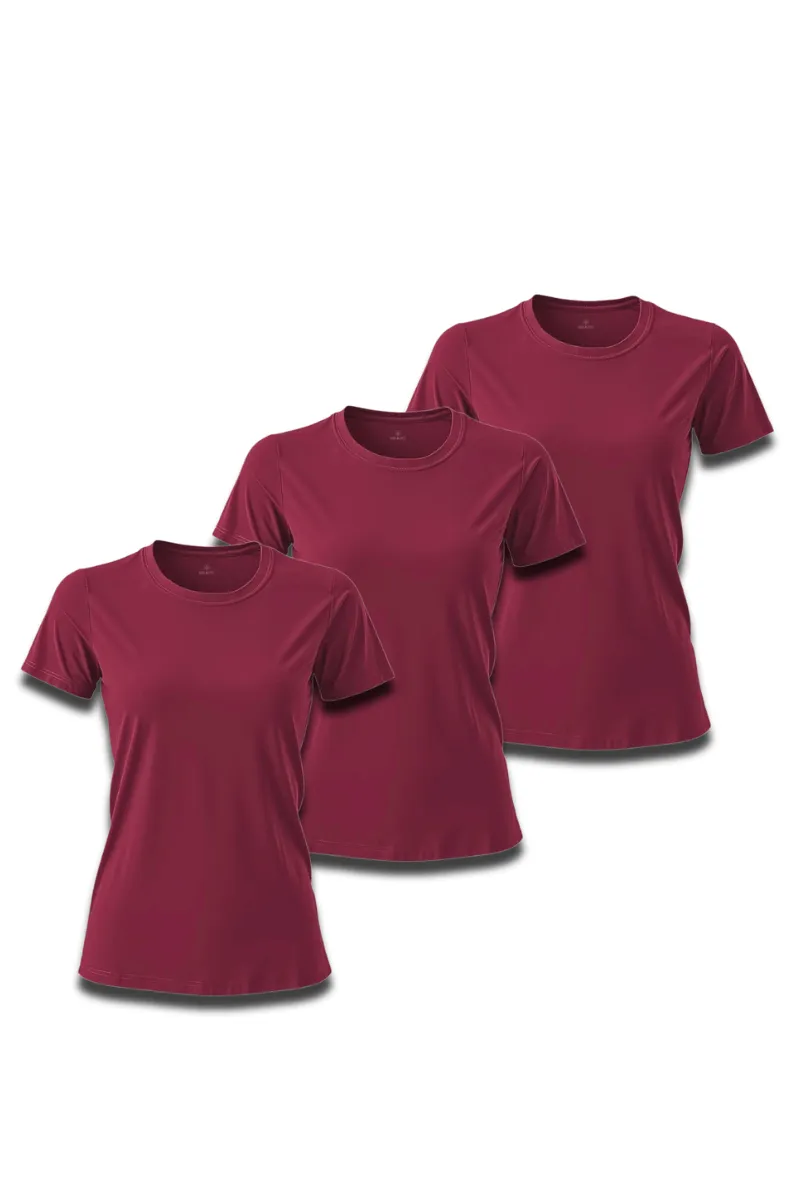 Kit 3 Camisetas Feminina Básica Poliamida UV Bordô