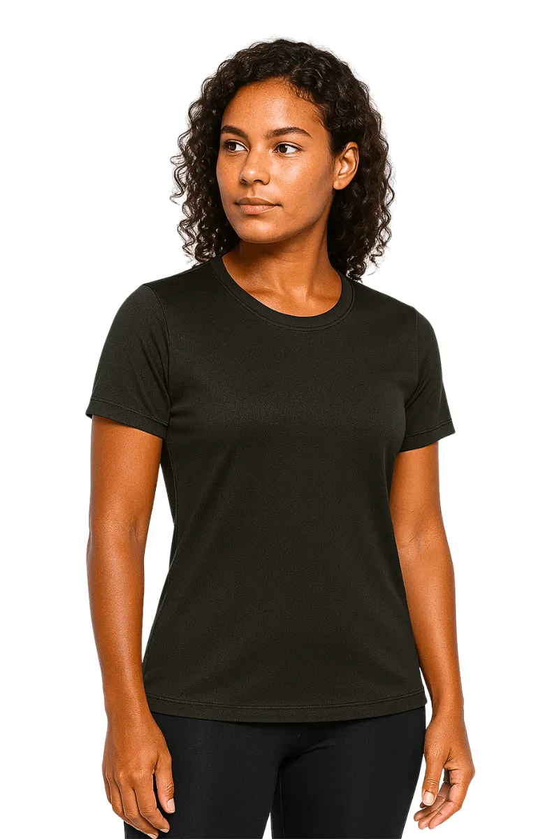 Kit 3 Camisetas Feminina Básica Poliamida UV Preto com tecido tecnológico. Proteção solar fator 50+, absorção de suor e secagem rápida. Evita o mau cheiro e não precisa passar. Ideal para trilhas, trekking e viagens