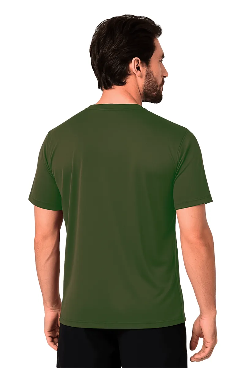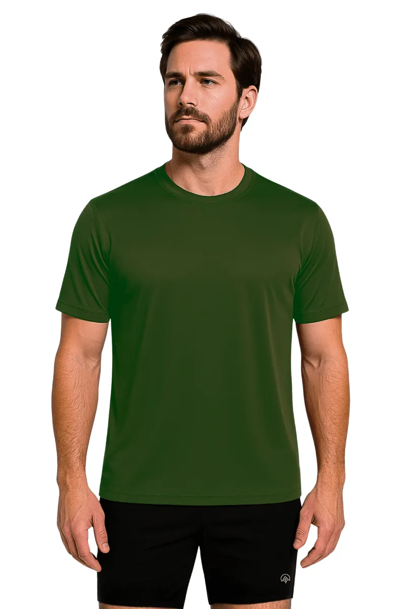 Kit 3 Camisetas Masculina Básica Poliamida UV Verde Escuro com tecido tecnológico. Proteção solar fator 50+, absorção de suor e secagem rápida. Evita o mau cheiro e não precisa passar. Ideal para trilhas, trekking e viagens
