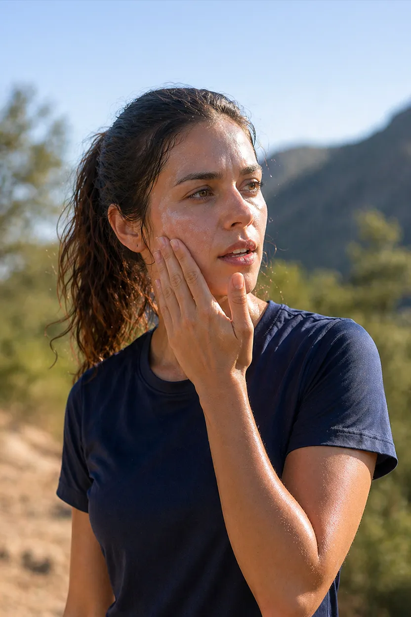 Protetor Solar FPS50 75g Vegano Para Trilhas e Trail Suntech. Oferece alta proteção contra raios UVA, UVB e luz visível, com mais de 5 horas de resistência à água e suor. Sua fórmula com tecnologia BioAdapt e manteiga de cupuaçu garante hidratação profunda, toque seco e conforto mesmo em condições extremas. Uso facial e corporal, protegendo pele sensível e lábios, com rápida absorção e sem resíduos. Ideal para quem busca performance e proteção em movimento.